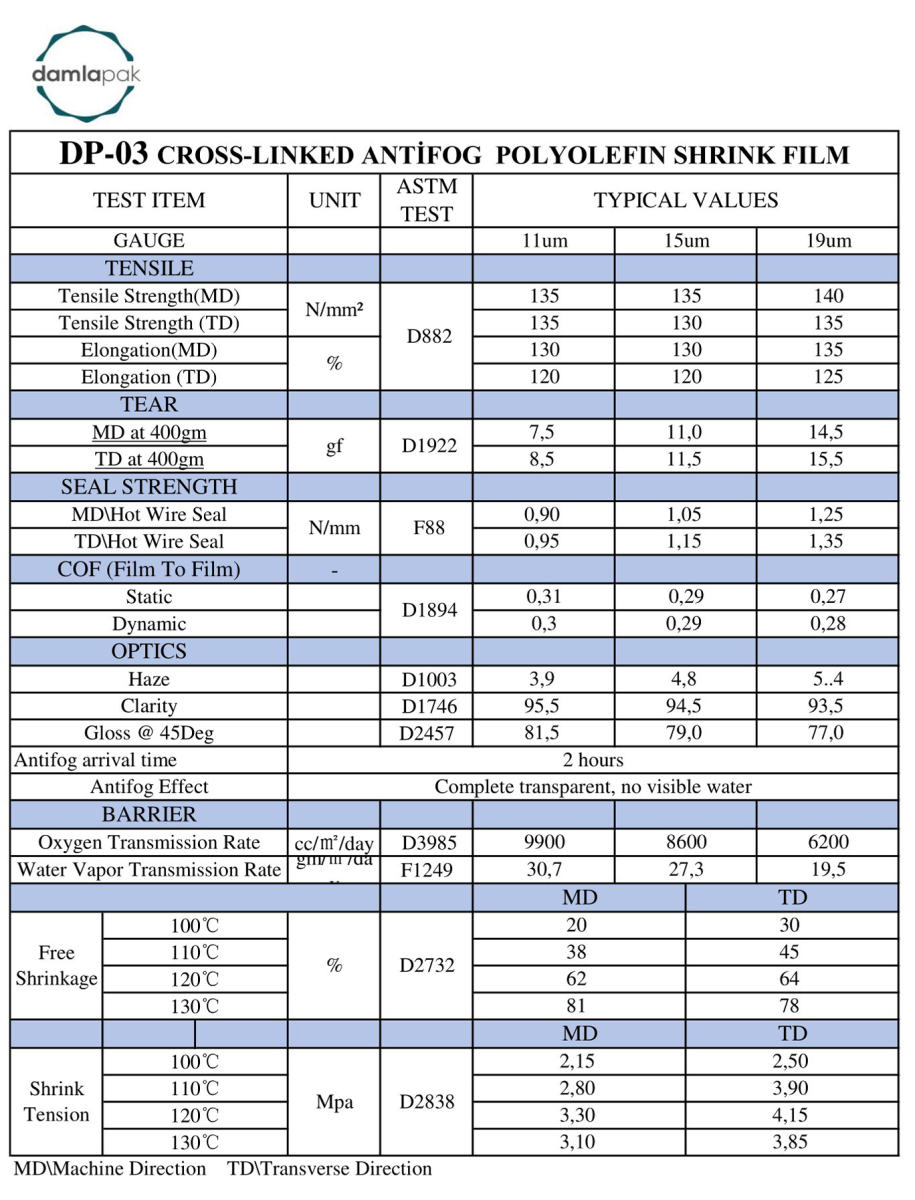 Tüm shrink yapıştırma makineleri ile uyumludur. Gıdayla Temas Uyumlu, perakende stoklama, nakliye ve tüketici işlemlerinin çeşitli aşamalarında gıdaları taze, sızıntısız, güvenli ve mikropsuz tutar.